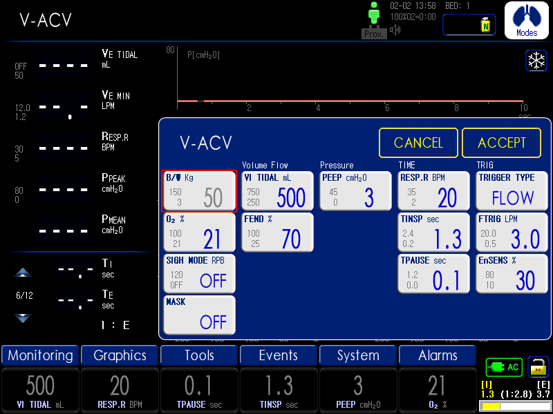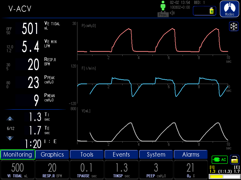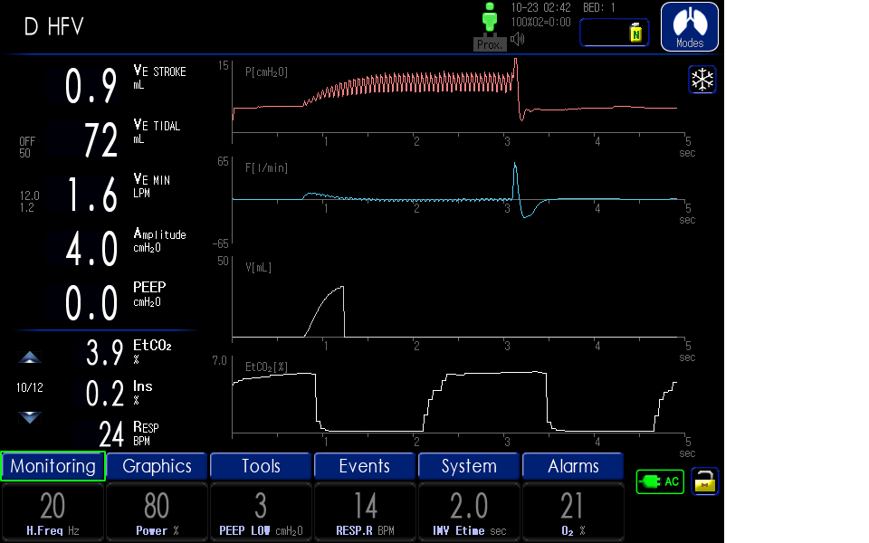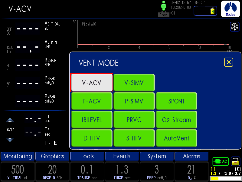 - PACV, PSIMV, VACV, VSIMV, Spont+( Apnea-BackUp), O2 Stream, PRVC, tBilevel, AutoVent®, HFV(SHFV®,DHFV®)