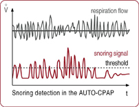 In addition to normal APAP and CPAP mode the device offers the FLEXLINE mode, a pressure increase which is proportionate to the individual respiration flow during inspiration and a pressure decrease during expiration.